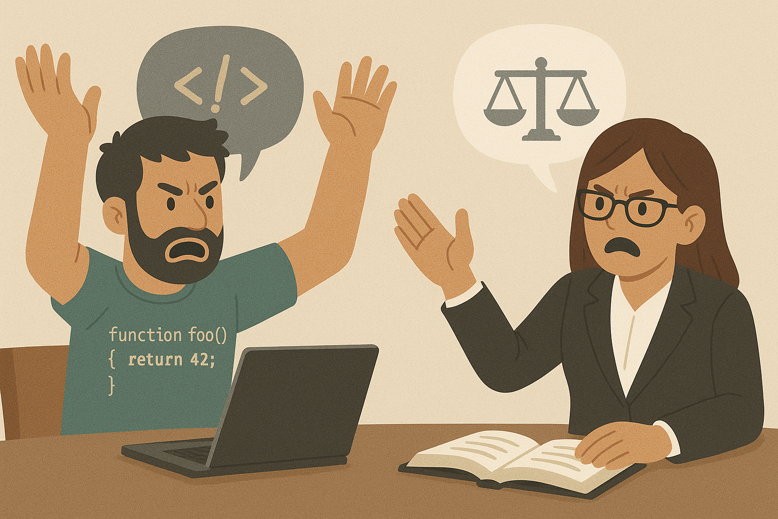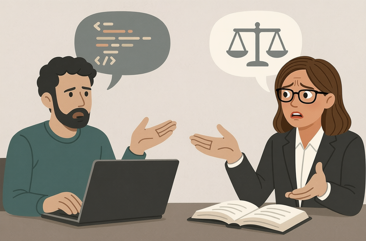De kern van het probleem is dat programmeurs en juristen het lastig vinden om elkaars taal te spreken.